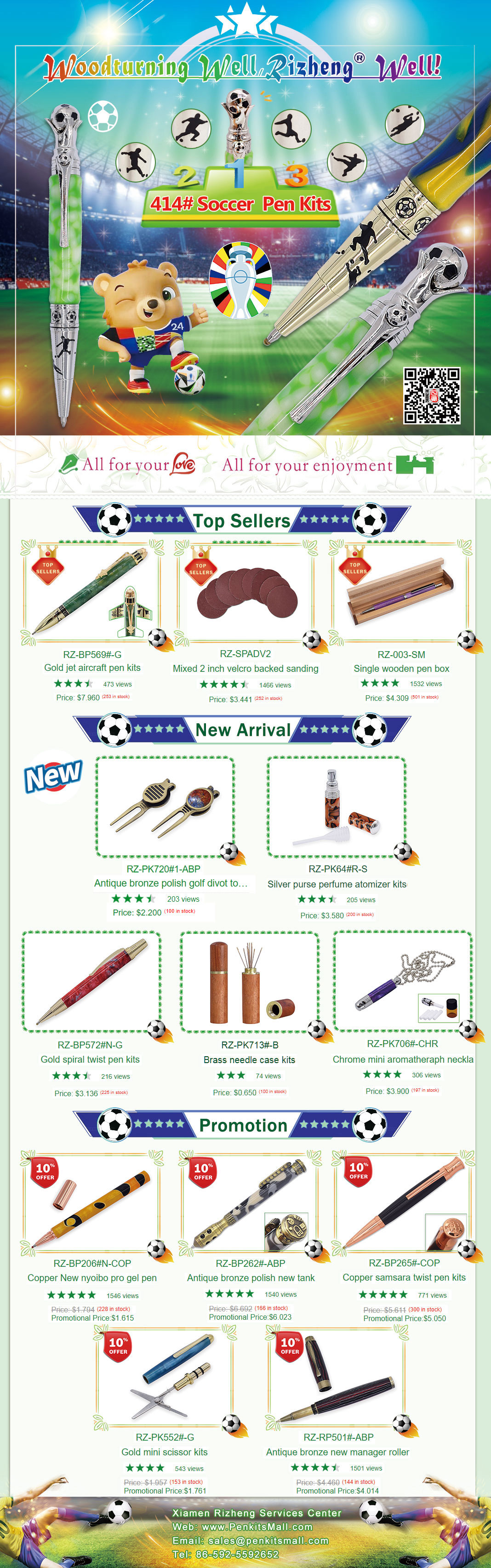 PS: If you have any idea (we can design for you) or any products popular in your market, not limited to pen kits such as project kits, woodturning tools, pen boxes etc, welcome to send us a picture or a link. As a return you can enjoy 20% discount for the recommended product on your first order once the production is ready, and the 20% discount will be deposited into your credit account for future purchase within 6 months. Thank you in advance for your kind recommendation.